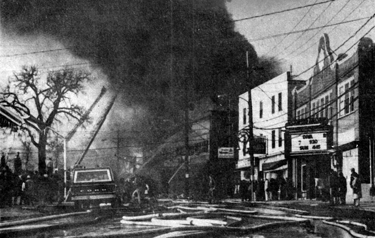In 1946, the Damon Building was severely damaged by fire, and the building was reconstructed without the third floor. The building burned again and was totally destroyed in a 1982 fire, after which it was replaced by the building we see at that corner today.