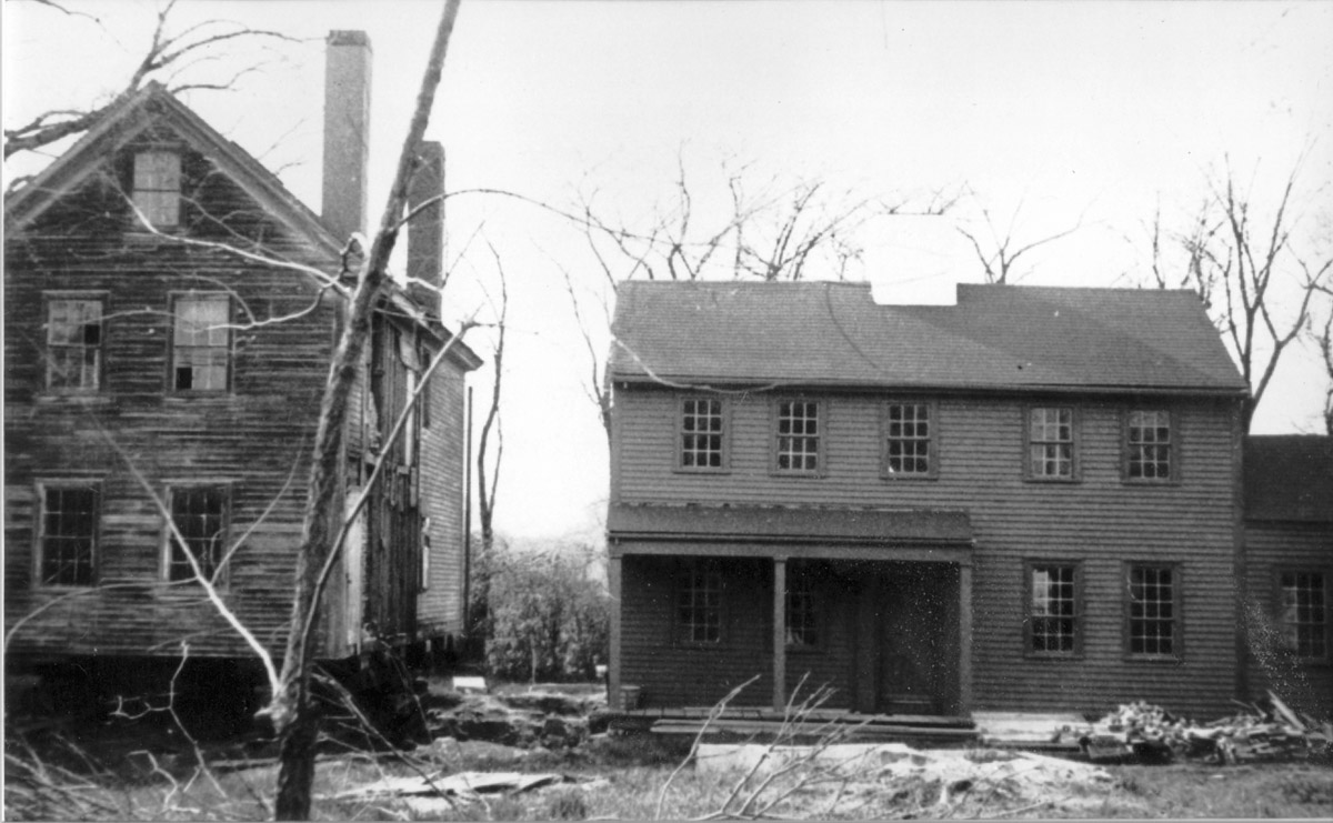 The land on which this house sits was originally granted to Nathaniel Rogers and Thomas Low. George W. Heard sold an acre and a half to Levi Brown, who had bought a half acre from his father on March 21, 1832. He built a dwelling and other buildings. He quitclaimed to his brother, Francis, who sold to Henry S. Holmes, 2 acres and buildings on March 9, 1842 (330: 18), Holmes to Willard B. Kinsman, April 1, 1851 (456: 112), who enlarged the house on the front. That section was moved around 1950 to 74 Essex Rd.
