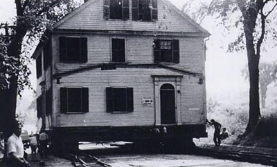 The John Wade house was built at the far end of South Green in 1810, but was moved further down County Road in 1948 to the corner of Lanes End to make room for the Old South Cemetery expansion. The Wade family owned and built many of the houses along County Rd. in that vicinity. This house bears remarkable similarity to the homes of housewrights Asa Wade and Samuel Wade, both still standing in their original locations on County Rd. facing the South Green View MACRIS