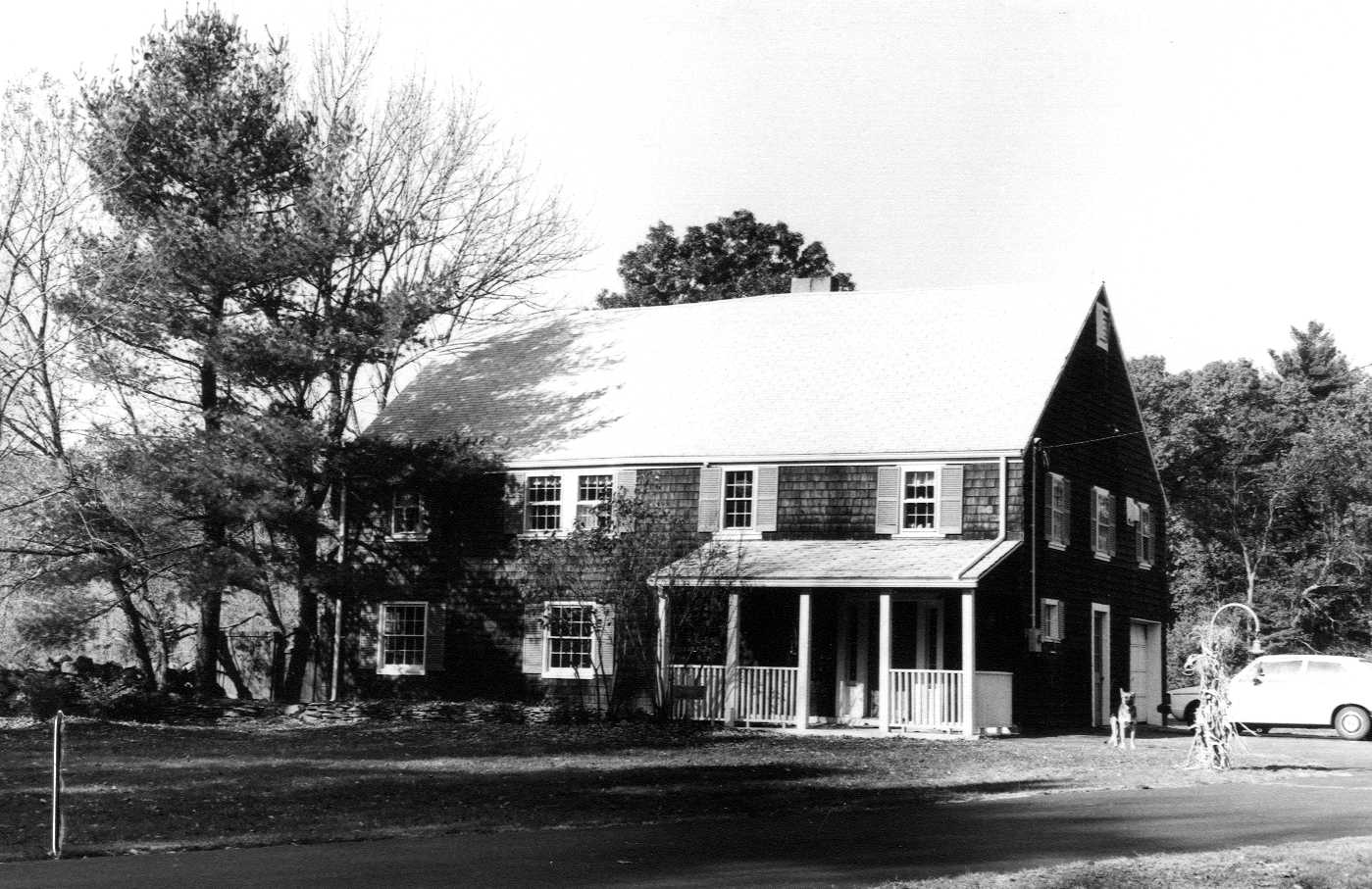 EXTERIOR DESCRIPTION: The Abraham Howe barn was converted to a residence in 1948. The four-bay long, two-and-a-half-story high, two-room deep structure incorporates the oak frame of an early 18th-century barn. Now embellished with Colonial Revival finishes, the shingled building maintains the profile of the original barn. A one-story porch is the only addition.”