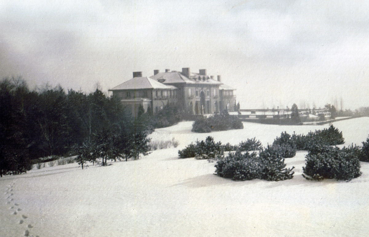 The first “castle” was intended as a summer home according to local narrative and was considered “too atrocious” by Mrs. Crane, but Mr. Crane asked her to give it ten years. In 1924, the Italianate mansion was torn down, as promised, and a new mansion soon took its place. Designed by architect David Adler of Chicago, the new fifty-nine-room mansion included a main facade designed in the 17th-century Stuart style.