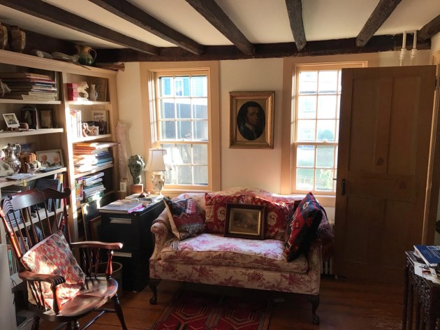 The Foster family constructed three First Period houses in this neighborhood, including the James Foster house across the street, and the ancestral Reginald Foster house around the corner on Water Street. James Foster, son of Reginald Foster, purchased this lot in 1717 and is presumed to be its builder. Although constructed at the end of the First Period, the house has early Georgian interior architectural elements and shows no indication of having once had a central chimney. The ceilings are low throughout the house; beams and joists previously covered with plaster were exposed during a 20th-century restoration. More recent renovations connected two small ells in the rear of the house and added a “Beverly jog” for additional access to the second floor.