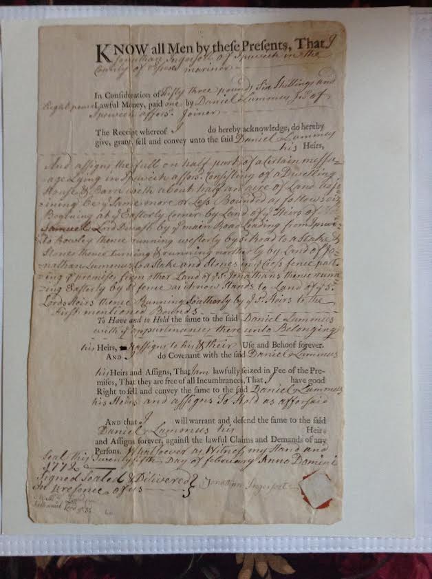 Located between the Daniel Lummus House and the Jonathan Lummus House, the three properties are on land that was originally granted to Thomas Dudley, governor of Massachusetts for four years, and his daughter Ann Bradstreet, America’s first poet. A deed of sale from Jonathan Ingersoll to Daniel Lummus in 1772 appears to be this parcel of land with a house and barn, between the two First Period Lummus houses still standing. The 1832 Ipswich map indicates an empty lot between the Lummus houses.