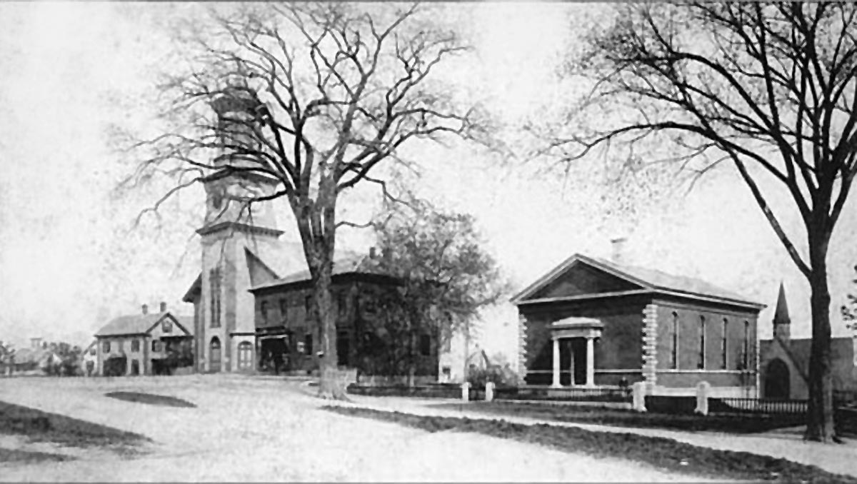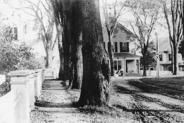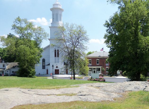 The Meeting House Green District includes thirty houses, three churches, and the town library, which are sited around the steep, rocky Green itself and along Main Street. It encompasses a wide range of architectural styles, with approximately half of the structures dating from the eighteenth century and half from the nineteenth.