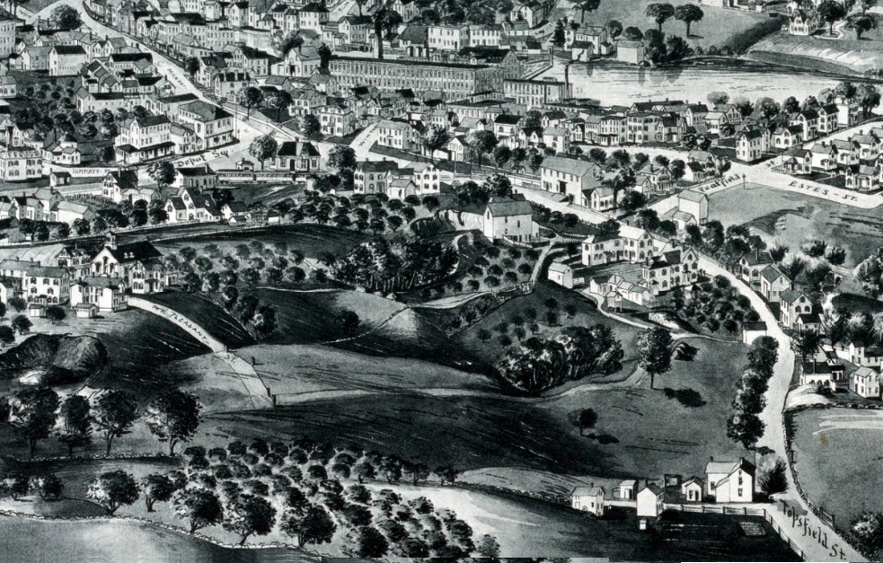 Closeup of Pleasant St. from the 1893 Ipswich Birdseye map