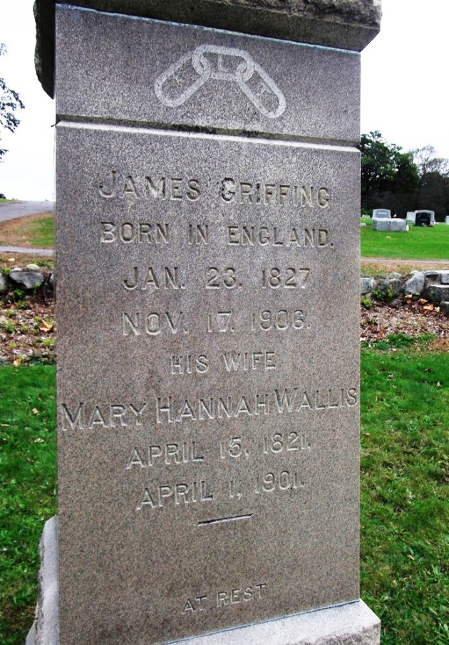 In 1875, James Griffing sold part or all of the property to John H. Gilbert in two transactions, but no structures are listed. (Salem Deeds 946:31). The deed states: “…premises devised to me by my mother, by will approved May 6, A.D. 1851.” The Ipswich Library’s Birth and Deaths record books list a Mary Hannah Griffing whose father was William Wallace, and her mother Theresa Panquet from Quebec. View Mary Hannah Wallace Griffing’s gravestone at the Old North Burying Ground