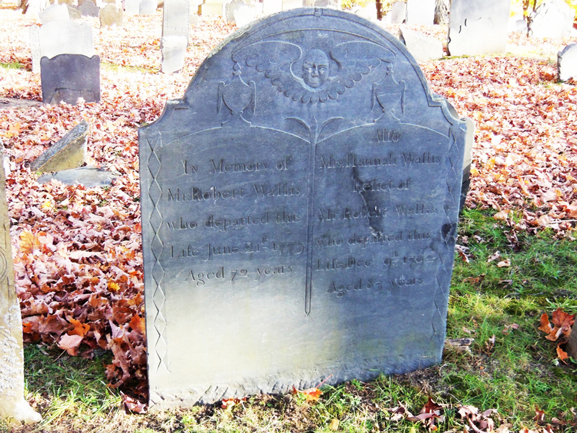 The Robert Wallis whose gravestone is shown is Robert(4) son of Samuel (3) son of Nicholas (2), and his wife Hannah Kinsman. Robert was the nephew of the Robert who built the house.
