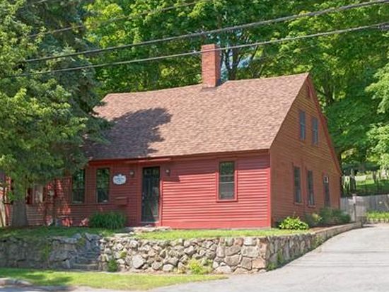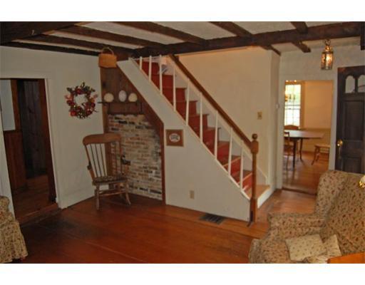 The 1750 Cape saltbox at 57 High Street was built by Robert Stone and has many original features, including wide pine floors. The separate workshop/barn on the northwest corner is believed to be a former cobbler shop once connected to the house.