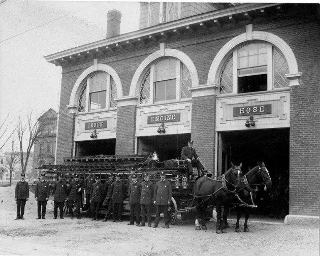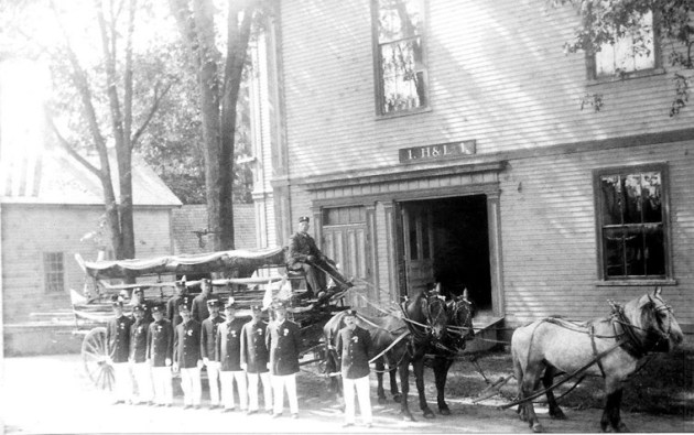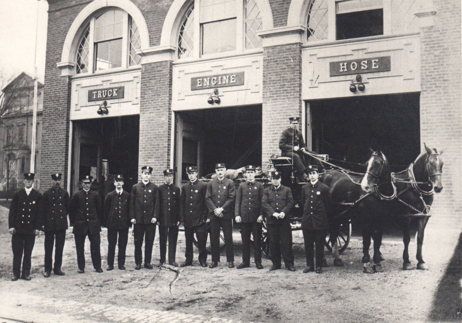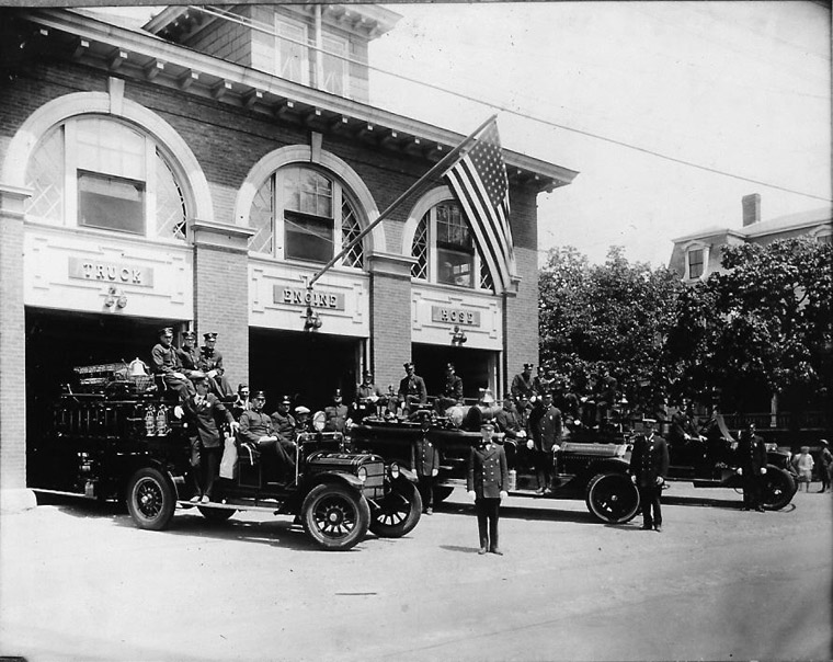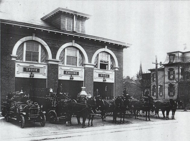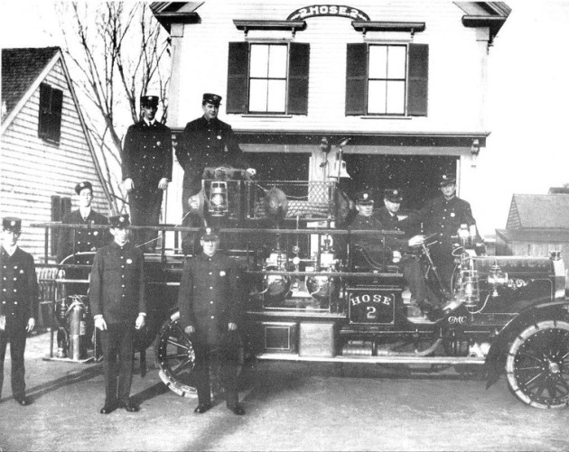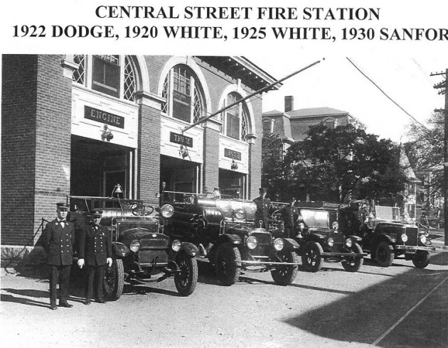 The fire station on Central Street in Ipswich was built in 1907, replacing the firehouse at Lord’s Square. Originally built for horse-drawn equipment, it took over the work of the smaller departments at the Old Town Hall, Warren St., Candlewood Rd., and several other locations in town when it became motorized. For over a century, the building has served as the town’s continuously-staffed fire station.