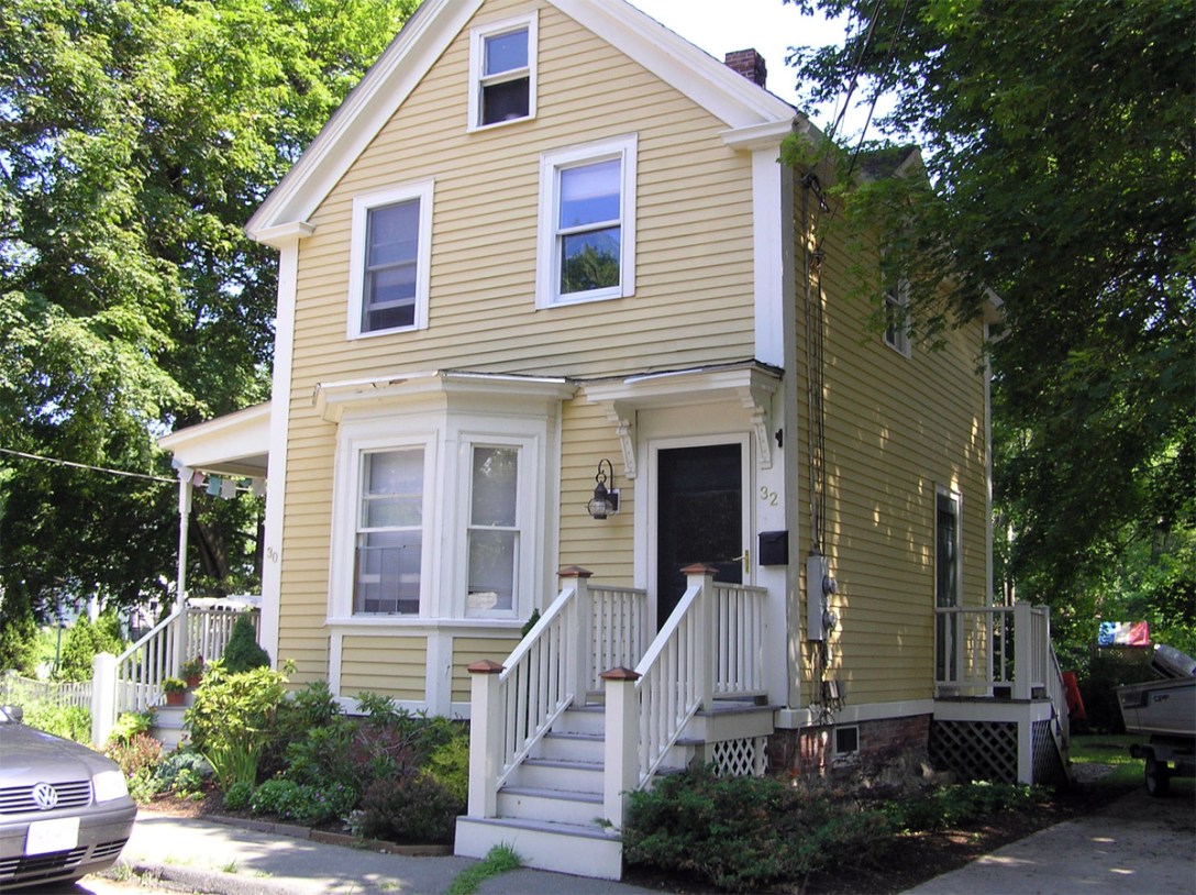 Based on word of mouth, historic town maps and early photos, it seems certain that the house at 30-32 Summer Street in Ipswich was once the High Street home of Daniel Smith, and was moved to the current location in the 1880s by B. John Conley. Information provided by Sue Nelson for the Ipswich Historical Commission dates the house at its present location to 1880.