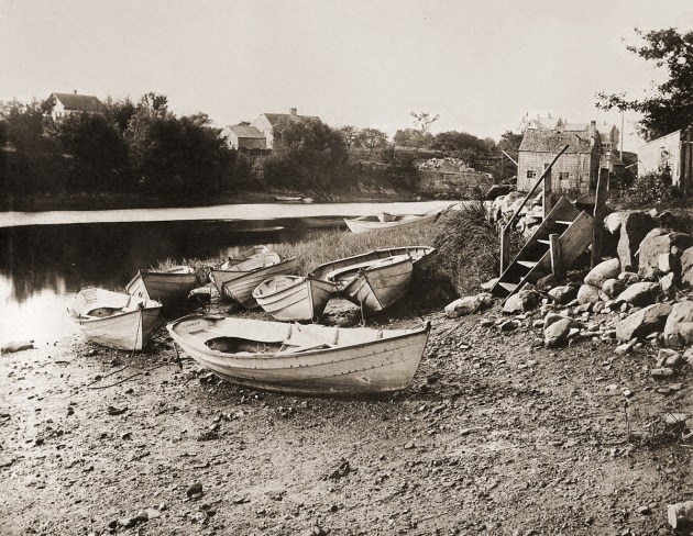 When Roger Preston arrived in Ipswich, he first purchased a lot along the river near what is now the intersection of Turkey Shore and Labor in Vain roads at or near where the Nathaniel Hodgkins house still stands. Thomas Franklin Waters noted that “evidently the neighborhood did not prove popular” and by 1644 every lot had been transferred. The corner of Poplar Street, and the section of Turkey Shore Rd. from Green St. to Labor in Vain have houses dating to the 17th and 18th Centuries. In the early years, the land from Poplar to Green Streets along the hillside was farmland, originally known as “Appleton’s Lot,” although it seemed to change hands frequently. In 1770, John Heard’s rum distillery, which later became a tannery, was constructed near the intersection with Poplar Street. Hunt’s Wharf, later known as Dodge Wharf, was nearby.