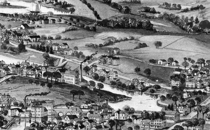 From the earliest times, the land along the south side of the riverbank was known as Turkey Shore, but no one knows why. In the mid-19th Century, it was given the “more proper” name of Prospect Street, but by the 20th Century it had regained its colorful original name.